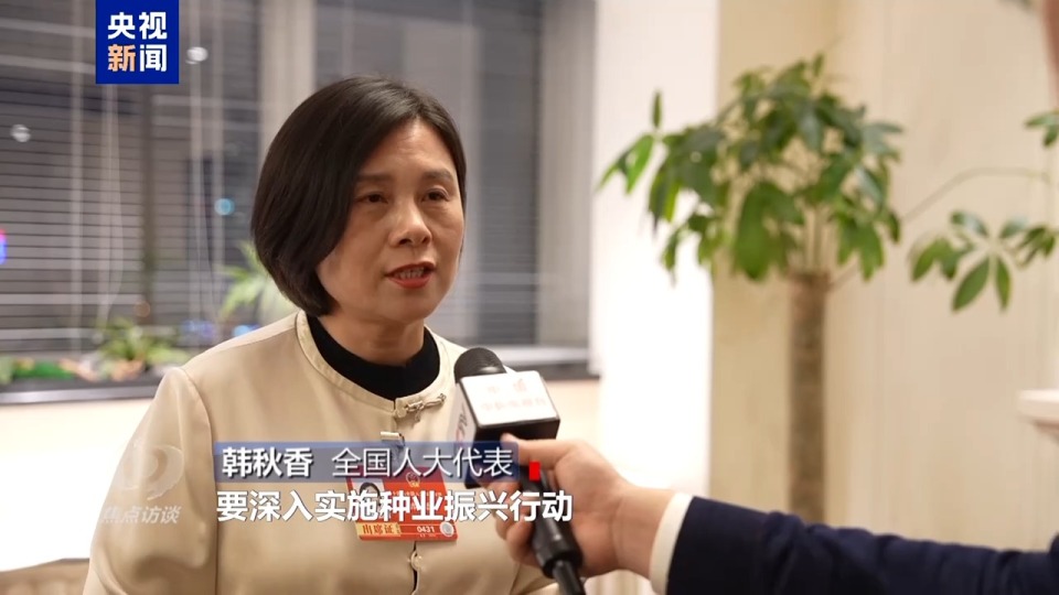 全国人大代表 韩秋香:我们也要从良种、良田、良机、良技几方面全面发力,深入实施种业振兴行动。培育出更多具有突破性的品种,做好高标准农田建设,保护好耕地。在农机方面做好智能化和现代化,让粮食安全更稳、更牢攥在自己的手里。