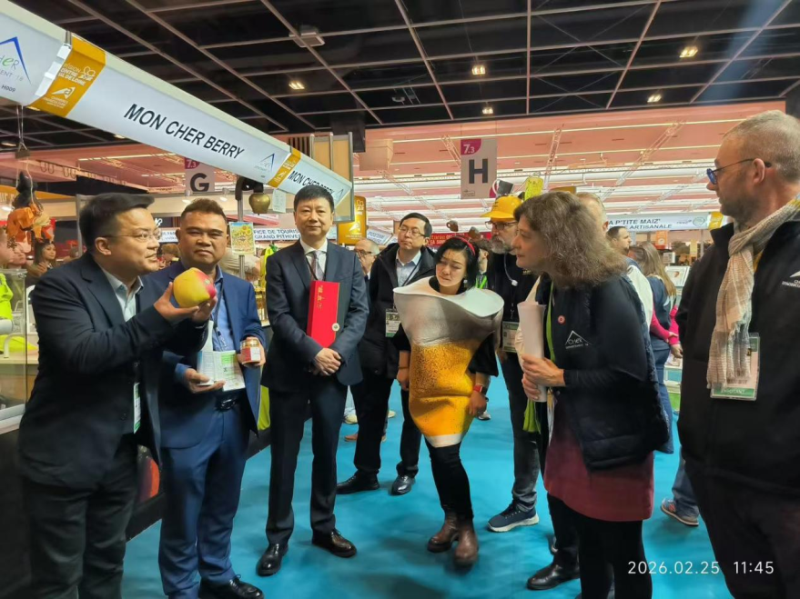 Recently, at the Paris International Agricultural Show (Salon International de l'Agriculture, SIA) in France, the "Yiluhong" apples from Gangu County, Tianshui, Gansu Province, China, made their debut at the exhibition area of China's agricultural exhibition group and immediately became the center of attention with their unique appeal. In front of the China Pavilion booth, the Gangu apples glowed with an attractive sheen, becoming a striking highlight of the exhibition area.