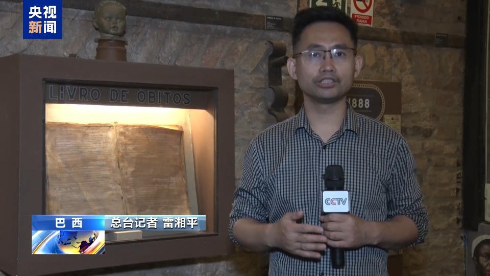 总台记者 雷湘平:这里是新黑人研究与记忆中心,也是美洲少见的、与奴隶贸易直接相关的考古遗址。在这片土地之下,长眠着数万名刚被运抵巴西的非洲奴隶。许多人在被贩卖之前,便因疾病、饥饿和劳累而死去。他们被匆匆掩埋于此。我身后是一本死亡簿,记录的是这里在1812到1818年间非洲黑奴埋葬于此的相关情况。