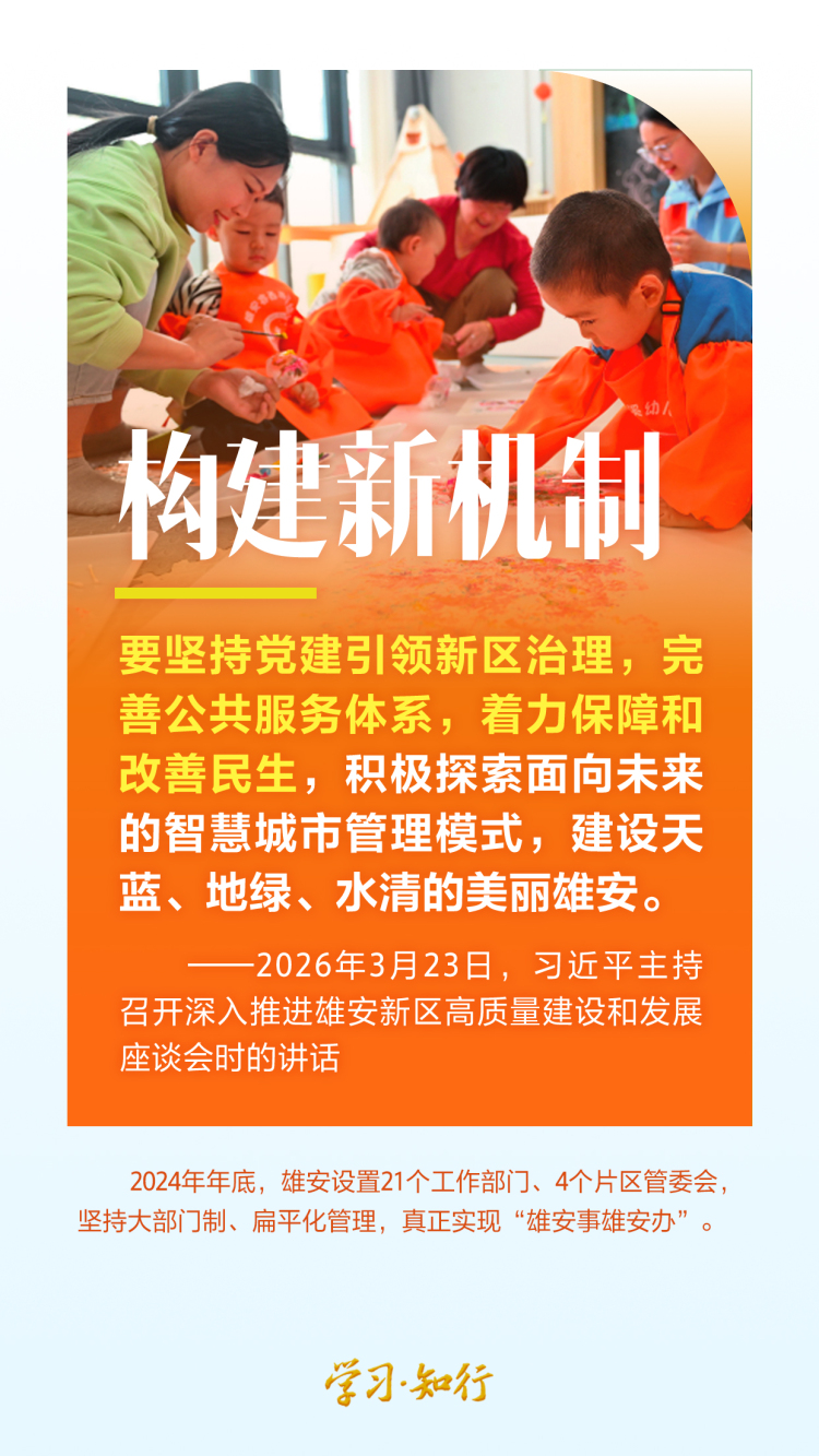 2026年3月23日,习近平总书记在河北雄安新区考察,主持召开深入推进雄安新区高质量建设和发展座谈会,强调牢牢把握雄安新区功能定位,努力建设新时代创新高地和推动高质量发展样板。