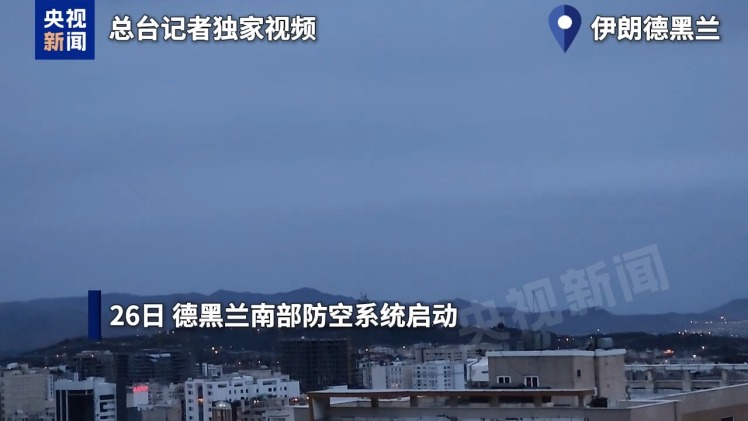 总台记者 李健南:现在是当地时间26日18时20分,就在刚刚过去的几分钟,我在德黑兰东北部的报道点看到德黑兰南部防空系统启动,试图拦截相关目标。