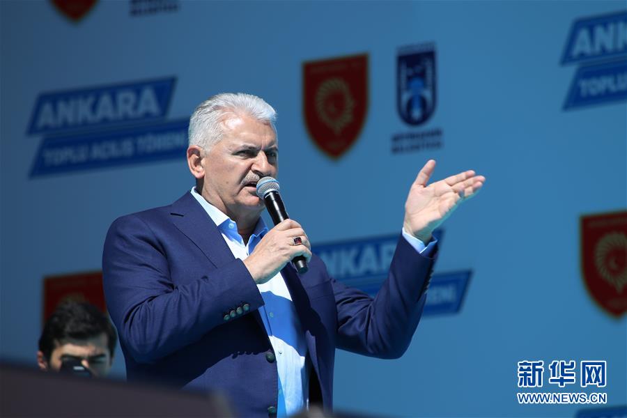 4月2日,在土耳其首都安卡拉,土总理耶尔德勒姆向集会群众发表演讲。 2日下午,土耳其首都安卡拉市中心的国父文化广场上,旗帜招展,呼声震耳。数万名支持总统制改革的土耳其民众聚集在此,为即将于本月16日举行的修宪公投呐喊造势。新华社记者施春摄