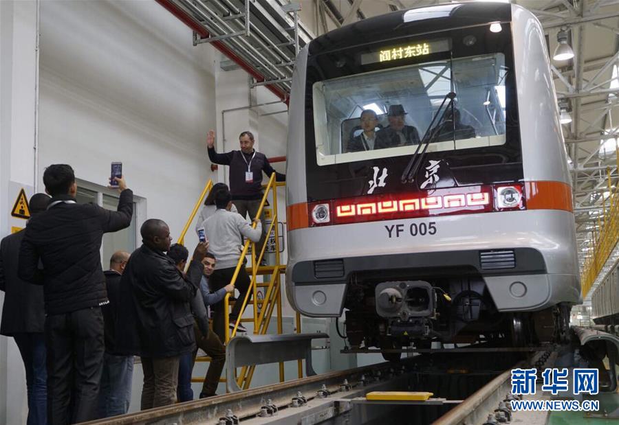 10月20日,三十多家中外媒体的记者前往北京市轨道交通指挥中心和燕房线参观。这是中外记者在燕房线参观。