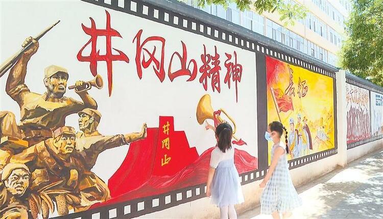 近日,在永昌县城关镇,一面长达百米的手绘“红色文化墙”成为当地新的“网红打卡地”和一道别具特色的文明城市风景线,吸引人们前往观看、拍照留影。