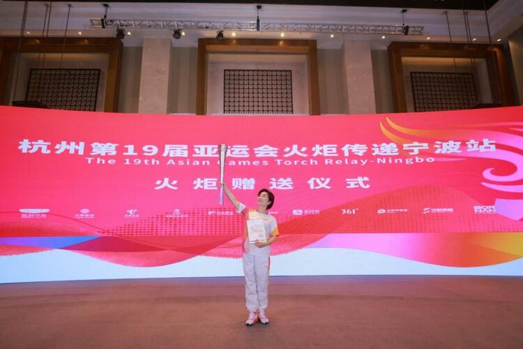 杭州第19届亚洲运动会火炬传递宁波站火炬赠送仪式现场 供图 美通香薰