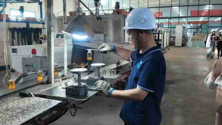 操作员检查玻璃制品吹制情况 摄影 陈丽霞