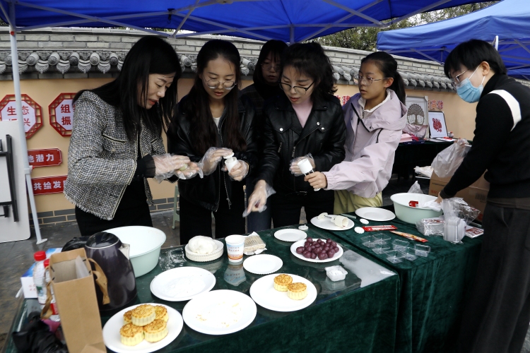 金岘村文化广场上人头攒动,“巧手做月饼 共庆团圆节”活动热烈开展。村民们在志愿者指导下揉面、包馅、压模,体验传统美食制作乐趣。现场悬挂的“服务暖民心 实践树新风”横幅,彰显出新时代文明实践的深厚内涵。