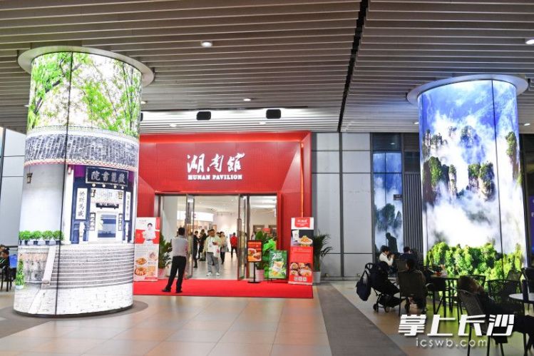 湖南常设馆以“开放湖南·湘遇世界”为主题,打造1134平方米立体“城市会客厅”。