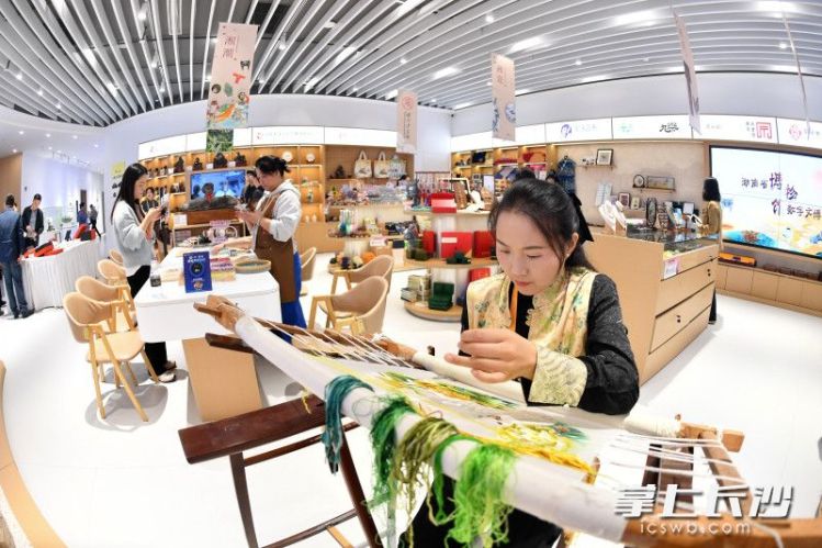 湖南常设馆以“开放湖南·湘遇世界”为主题,打造1134平方米立体“城市会客厅”。 均为长沙晚报全媒体记者 王志伟 摄