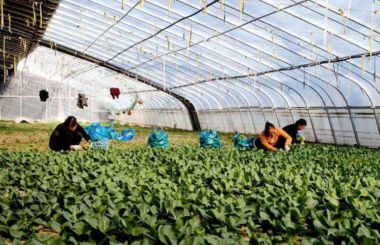 蔬菜大棚种植基地负责人张小平说:“我在西城村承包了35座大棚,里面种了生菜、油麦菜、小油菜、菠菜等叶子菜。这些蔬菜生长周期短,一年能种四茬,亩产约8000斤左右。最近一段时间生菜、菠菜、小油菜的市场行情比较好,一年下来收入近20万元。”