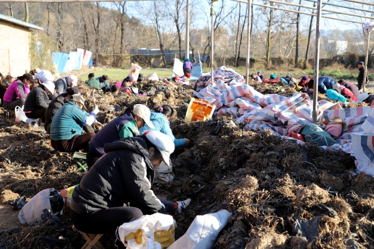 另一边的分拣筛选现场,村民沐浴着冬日的暖阳,拉着家常,严格遵循采收标准,挑选着未完全开放的花苞,确保药材品质。“我一天能捡七八斤,挣几十元,挣钱的同时,接送孩子也很方便。”正在劳作的村民李小娟脸上洋溢着笑容。据了解,款冬花采收期间,全镇每天能吸纳百余名家门口的劳动力务工,让村民实现顾家挣钱两不误。
