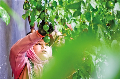 11月24日,乌兰浩特市乌兰哈达镇高根营子嘎查村民在高标准设施农业园区大棚内管护百香果。近年来,当地整合各级乡村振兴衔接资金,巧做“农业+旅游”文章,打造五个功能区的高标准设施农业园区,聚焦高端浆果、采摘研学、寒地果蔬和高新蔬菜种子研发等,形成了特色鲜明、优势互补的产业格局,助力乡村振兴。(记者 王晓博 摄)