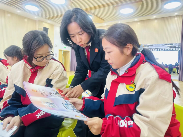 审判庭庭长张娜(中)向同学们科普相关法律法规