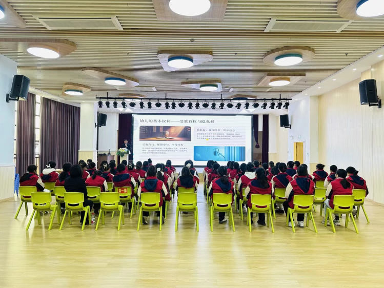 讲座中,常伟明法官结合真实案例,系统解读了《中华人民共和国未成年人保护法》《中华人民共和国教师法》等与学前教育密切相关的法律法规,引导教师筑牢法治思维、规范教育行为。他强调,保障幼儿合法权益是教师的基本职责,必须将法治意识融入日常保教全过程,严格落实安全监管措施,杜绝任何形式的体罚、变相体罚及冷暴力行为,切实尊重幼儿的人格尊严与隐私权。同时,教师在与家长、同事交往中也应恪守职业道德,坚守法律与师德底线。