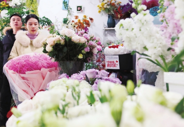 12月29日,城步苗族自治县儒林镇城东路一家花店,顾客在选购鲜花。元旦临近,当地花店迎来销售旺季,人们纷纷购买鲜花装点家居,表达对新年的美好祝愿。