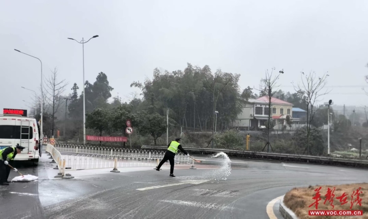 1月19日至20日,应对雨雪冰冻,长沙市交通运输综合行政执法支队24小时不间断巡查重点路段、桥梁、高速路口、客运站场,扬撒工业盐,提醒安全驾驶。(供图:何燕辉)