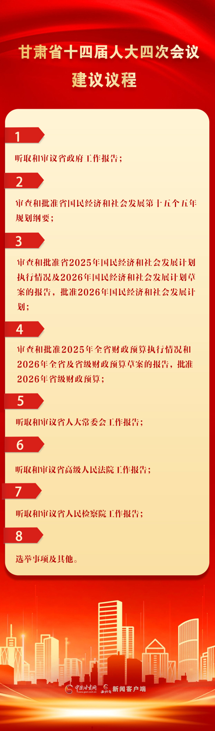 原标题:【甘快看·聚焦2026甘肃两会】海报|甘肃省十四届人大四次会议建议议程