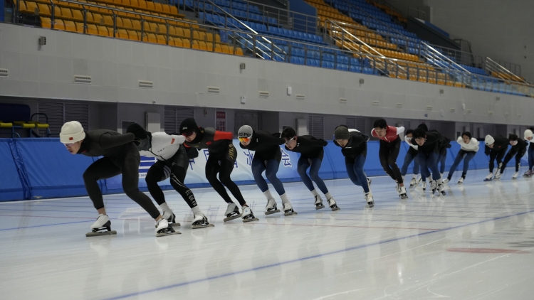 速滑队员在内蒙古冰上运动训练中心训练 摄影 项超