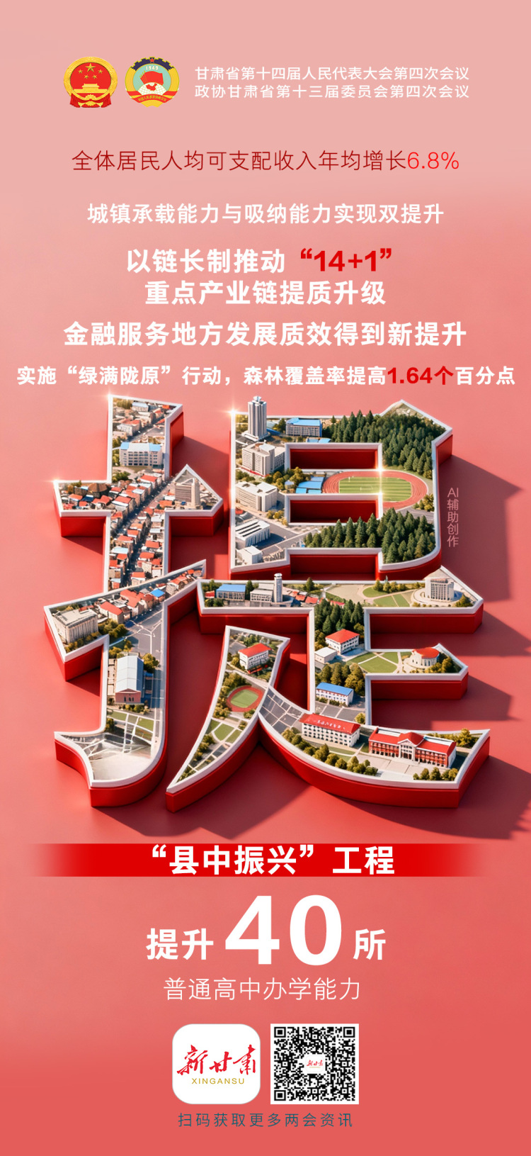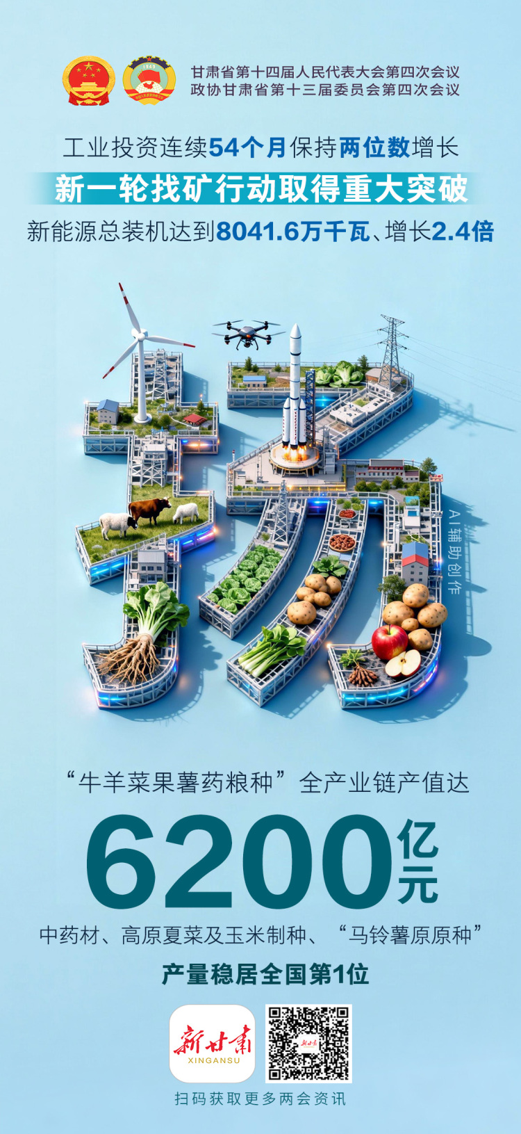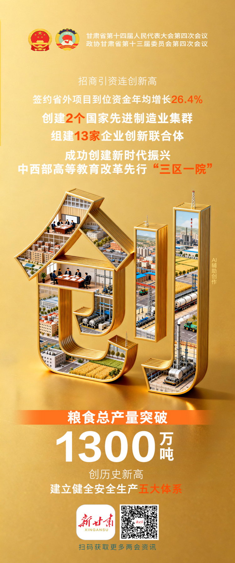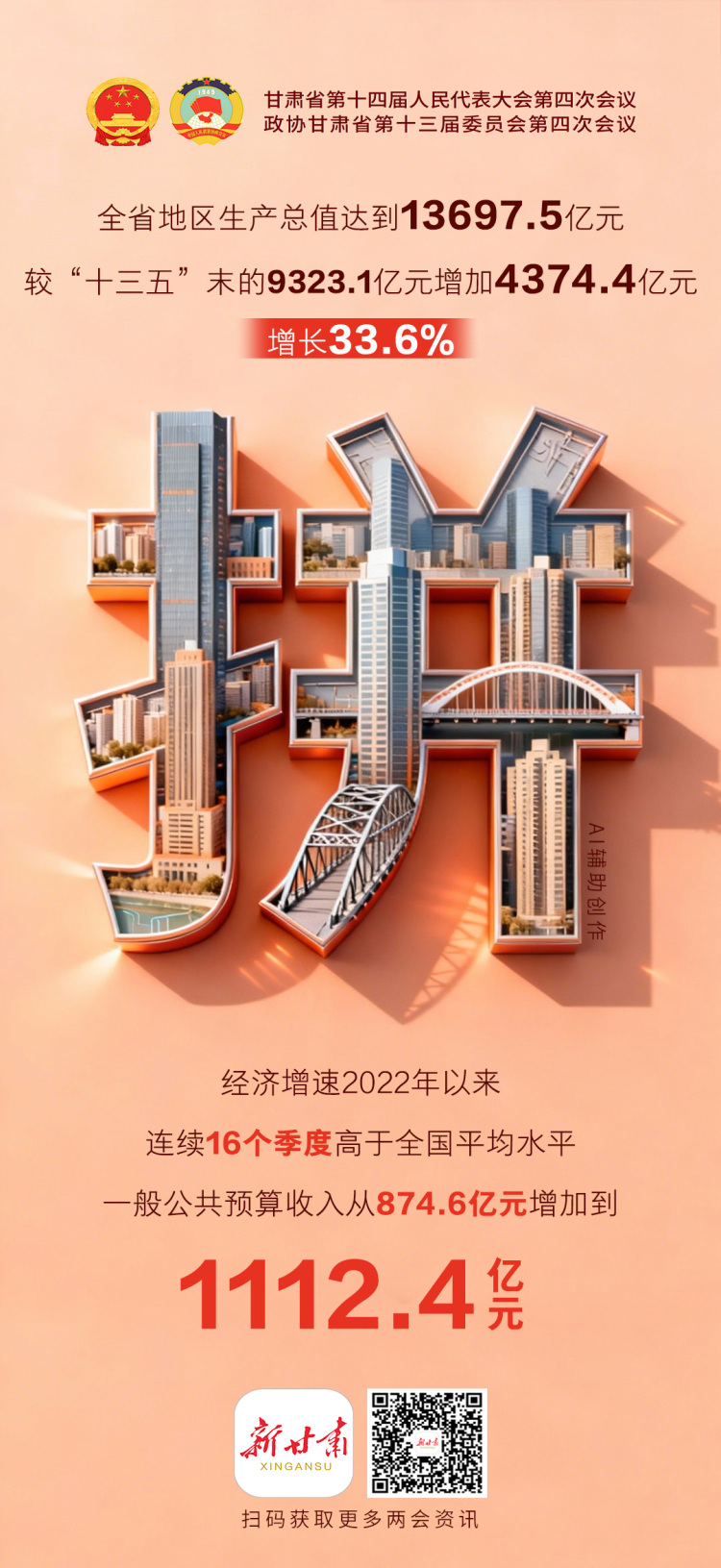 1月27日,甘肃省第十四届人民代表大会第四次会议隆重开幕。省长任振鹤作《政府工作报告》,报告既跳动着强劲的发展脉搏,也浸润着深厚的民生温度。我们用6个创意字,一同解读这份报告,回望陇原的奋进乐章,共赴“十五五”的壮阔新程。