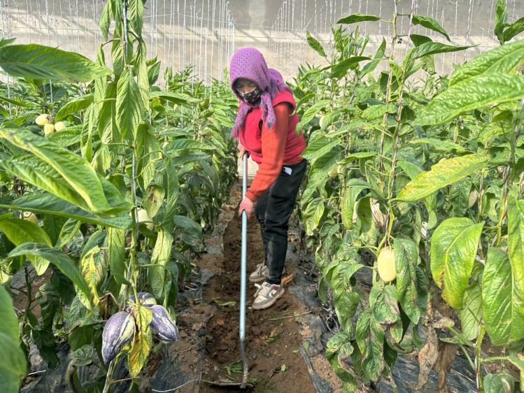 当地村民在人参果日光温室里务工(1月26日摄)。新华社记者 胡伟杰 摄