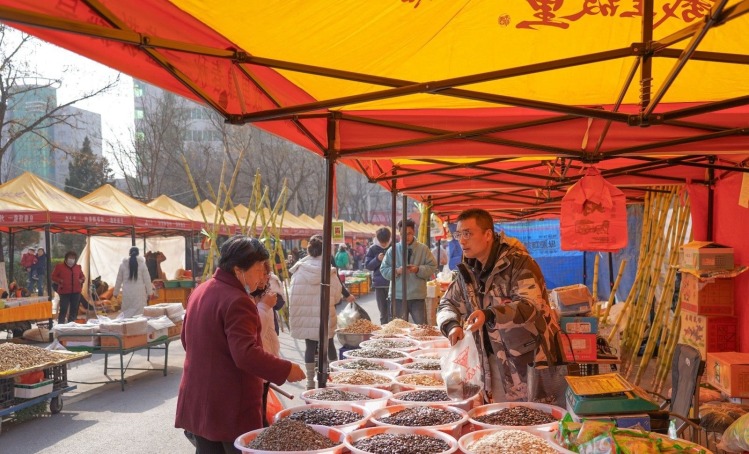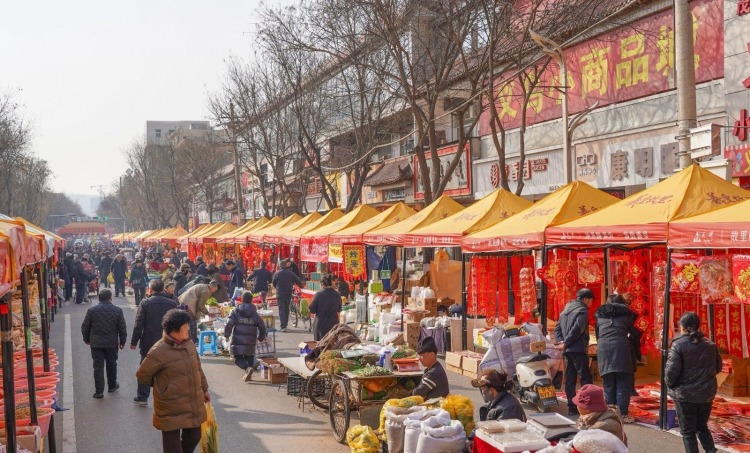 走进年货市场,沿街悬挂的红灯笼、中国结将街巷装点得暖意融融,市民们驻足挑选,前来采购的市民络绎不绝,挑选、询价的身影穿梭其间。