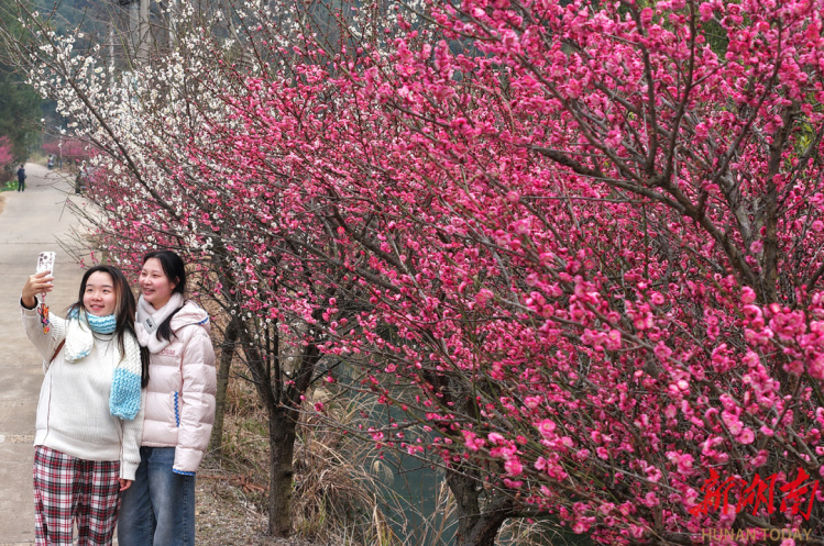 2月5日,游客在湖南省衡阳县杉桥镇伊山村踏青赏花。立春过后,气温回暖,该村连片的梅花、油菜花竞相绽放,吸引人们走出户外,尽享春日风光。曹正平 刘欣荣 摄影报道(湖南图片库)