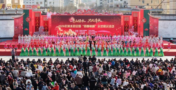 2月10日,农历腊月二十三,2026年全国“四季村晚”天水市清水县示范展示活动启幕。本次活动以“青山绿水·只此清水”为主题,以文化为纽带,为清水百姓奉上一场年味十足的新春文化盛宴。