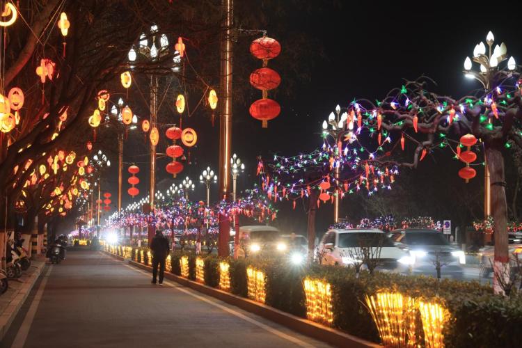 从街头巷尾到公园广场,从主干道路到节点景观,一盏盏彩灯、一串串灯笼交织成画,一幅年味浓郁、灯火璀璨的新春画卷在古冀大地徐徐铺展。