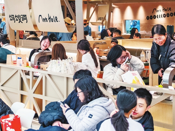 2月15日,湖南湘江新区一家购物广场内,市民在用餐。新春佳节,长沙市各大商圈围绕“吃住行游购娱”全链条,推出多样促消费活动,为市民提供丰富的假期消费体验。