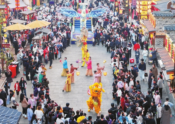 2月14日,演职人员在湖南省衡山县衡山渡进行民俗、非遗大巡游。春节前夕,该县举行丰富多彩的民俗和非遗展演,让市民游客沉浸式体验传统年味,喜迎新春佳节。