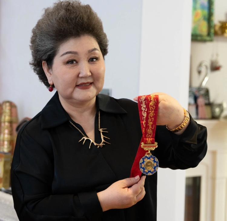 乌日娜获得文化部颁发的“非遗奖章”(图片拍摄:胡民)