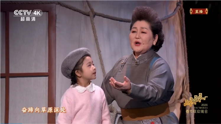 除夕之夜,万家团圆。2026年2月16日,中央广播电视总台春节联欢晚会的舞台上,一曲《奔腾的海骝马》如草原长风般席卷而来,瞬间攫住了亿万观众的心。著名歌唱家乌日娜、青年演员阿如那,与95名乌兰牧骑队员一道,用浑厚的长调、铿锵的舞步与极具张力的舞台呈现,将内蒙古草原的辽阔、豪迈与深情,毫无保留地献给了全国观众。节目播出后,反响如潮,许多人表示:“即使听不懂蒙语歌词,也被那份纯粹的情感与力量深深打动,在电视机前湿了眼眶。”