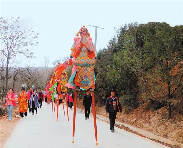 静宁县李店镇李店村社火队员“踩高跷”。通讯员 王毅