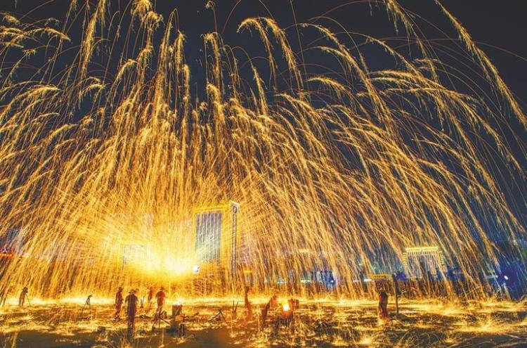 国家级非遗王氏铸造打铁花活动在永靖县举行。通讯员 李忠