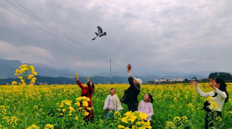在崀山八角寨和崀山镇窑市村盆溪油菜花基地等处,游客们三五成群穿梭花海,或举着相机定格美景,或牵着孩童漫步闻香,或邀约好友拍一组春日写真。不少摄影爱好者架起设备,静候光影变化,记录丹霞与花海交融的瞬间。周边农户摆起小摊,蜂蜜、菜籽油等土特产备受青睐,乡村旅游的烟火气愈发浓郁。