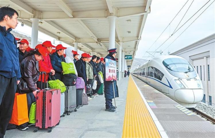 500名身着统一标识的定西籍务工人员,背着鼓鼓的行囊,精神头十足。大家有序登上G2096次高铁专列,以“点对点、一站式”闭环输送模式,奔赴青岛开启新一年的务工新征程。