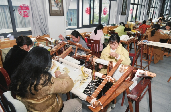 2月28日,湖南省湘绣研究所刺绣车间内,绣娘正赶制新春订单。春节后,该所全员复工投入商务礼品、文创产品及新中式服饰的生产。去年,其产品亮相国内外展会37场,推出45款新中式湘绣服饰,多项作品获奖并入选全运会非遗特许商品。