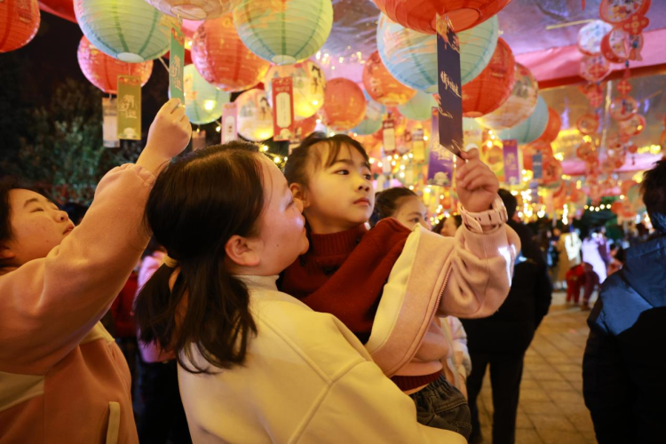 随着时间的推移,夜色渐深,但园内的人气丝毫不减。花灯长廊里人流如织,孩子们的欢笑声、亲友间的交谈声、相机快门的咔嚓声交织在一起,汇成一首欢乐交响曲。不少游客举着花灯造型的小灯笼夜游赏景,光影流动间,他们脸上都洋溢着幸福的笑容。(文 刘平甫 刘婕 欧阳鑫海)