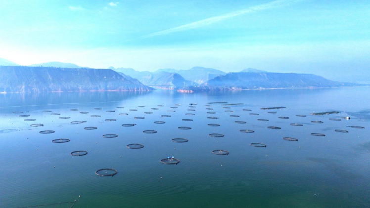 清晨的刘家峡水库,薄雾轻笼,碧波万顷。渔民们驾着小船驶向养殖区,渔网起落间,金鳞闪耀、水花飞溅,黄河鲤鱼、三文鱼、金鳟、虹鳟等各式鱼类竞相跃出水面,勾勒出一幅丰收喜乐的渔耕图。作为黄河上游重要的水源涵养地和生态屏障,刘家峡水库总库容57亿立方米,水域面积达16万亩,常年保持Ⅱ类优质水质,水温稳定、溶氧充足,为淡水鱼类生长提供了得天独厚的自然条件,也让这里成为甘肃最大的水产养殖基地。