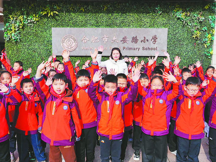 开学报到第一天,柏艳在合肥市六安路小学护送学生们放学。
