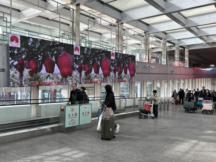 近日,北京首都国际机场T3航站楼电子大屏上,24小时循环播放着天水市秦安县的花牛苹果宣传视频,让来自五湖四海的旅客了解这个“甘味”,同时也领略了秦安历史文化魅力,更为秦安苹果品牌强势“出圈”注入强劲动力。