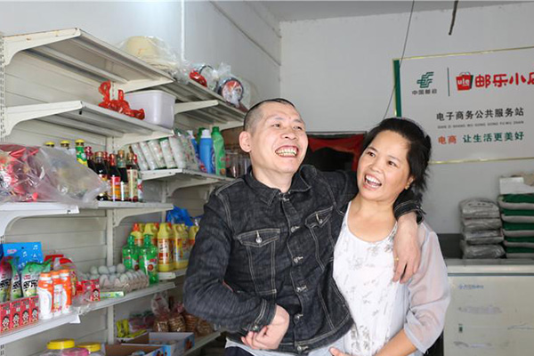 为了给丈夫挣医药费,罗移春带着丈夫北上河南打工。后来,由于女儿上学需要照顾,双方老人年迈,2014年春节前夕,罗移春带着丈夫回到石峡村老家。她在村委会门前开了个小杂货店,即便有时忙得脚不离地,但给丈夫做的复健却从未中断。