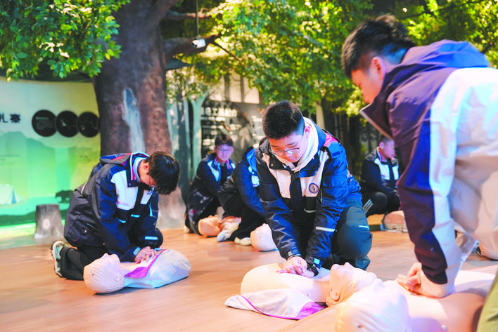实操演练、趣味互动、专业科普……3月30日是全国中小学安全教育日,合肥各学校开展形式多样的安全教育系列活动。图为合肥一六八玫瑰园学校南校的学生在学习急救技能。(合肥晚报-合新闻记者 李康佳 摄)