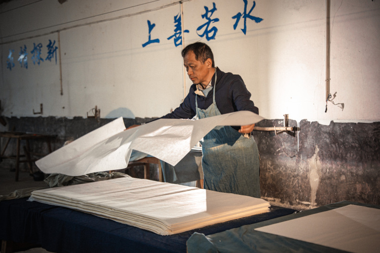 1990年,杨玉杰自家的纸坊也开始运营了。先辈们口传心授的手艺心得,从小就深深刻在他的心底。也正因为这份与生俱来的缘分,他刚改行做手工纸时,虽只是凭兴趣摸索,但在前辈的影响下,慢慢系统梳理瓷青纸的工艺流程、反复实践改良,最终找到了自己要坚守的方向,还特意将纸坊选在适合造纸的丁家桥,立志让这门濒临消亡的古法技艺重焕生机。