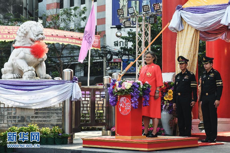 2月19日,在泰国曼谷唐人街,泰国诗琳通公主(前)出席“羊年欢乐春节”开幕式。