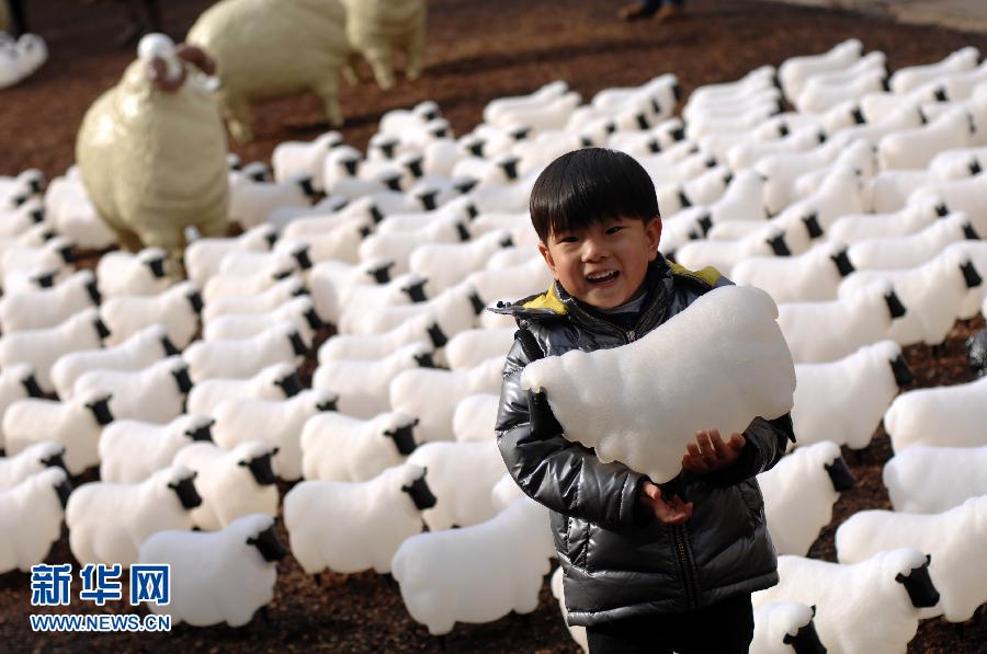 2月20日,在加拿大温哥华,一名男孩和羊雕塑合影。在2015年春节期间,世界各地举行活动庆祝羊年的到来,海外华侨华人和其他当地民众一起欢度节日,许多外国政要也参与春节活动。招人喜爱的羊型装饰、闪耀夜空的烟火灯饰、传统的舞龙舞狮和红灯笼……喜气洋洋的年味不知不觉洋溢全球。随着中国文化影响力提高,春节已逐渐成为世界性节日文化活动。新华社发(谢尔盖摄)