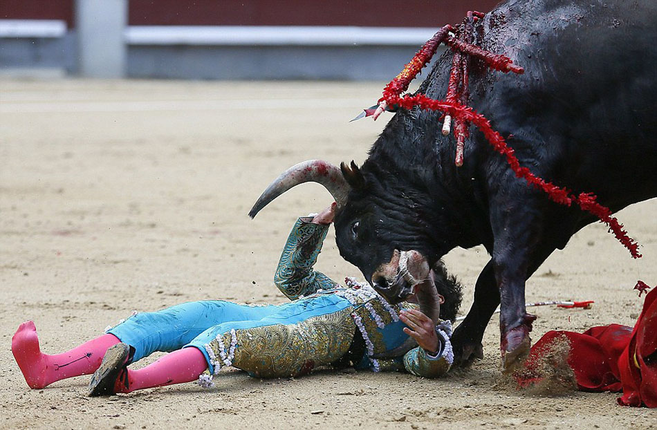倒地之后,公牛将牛角狠狠扎向艾斯克德罗的身体