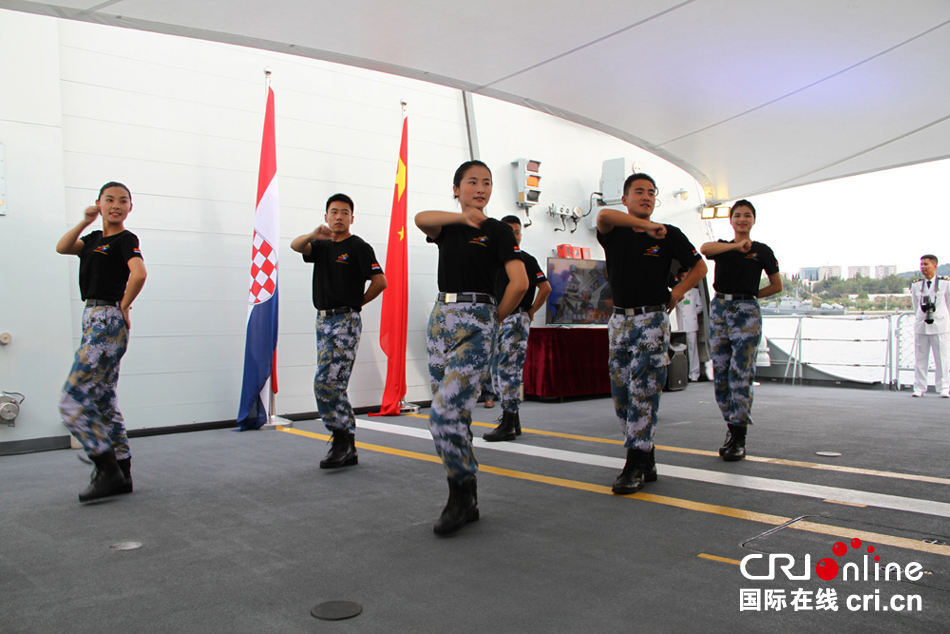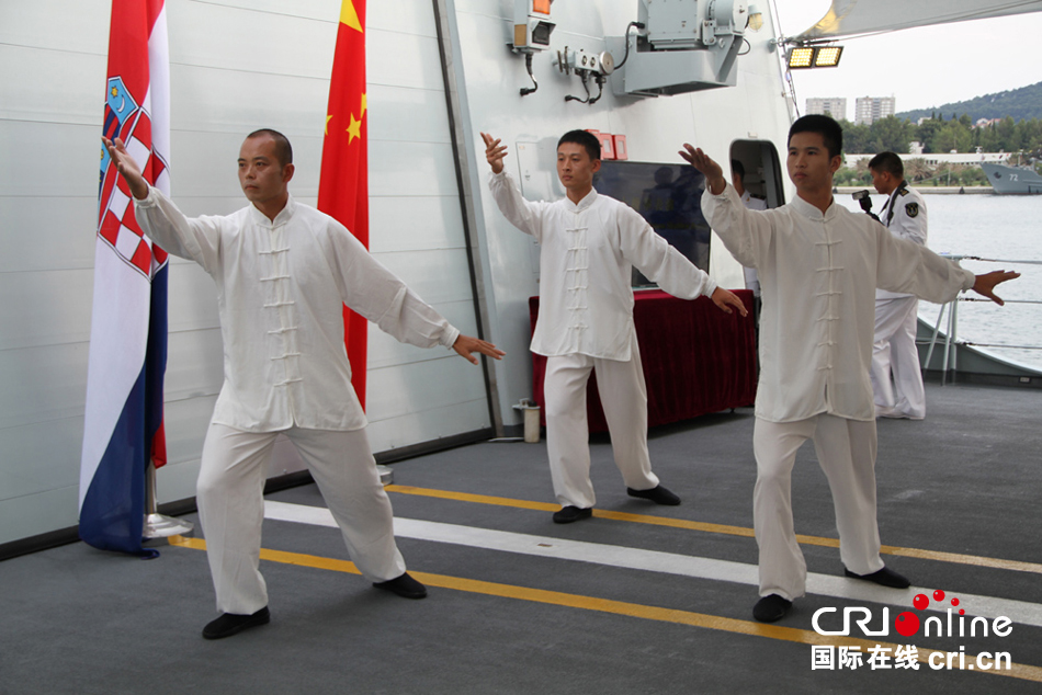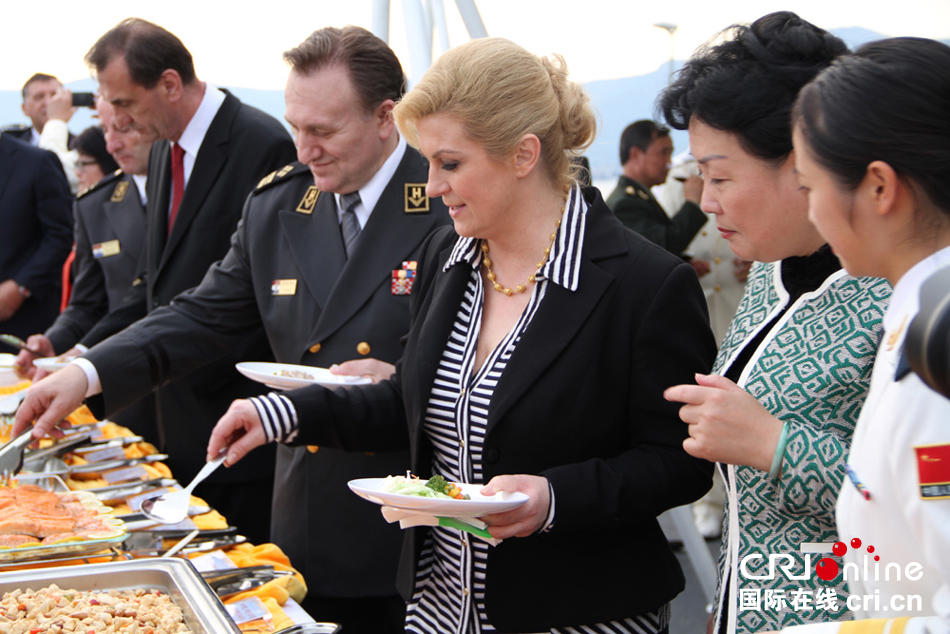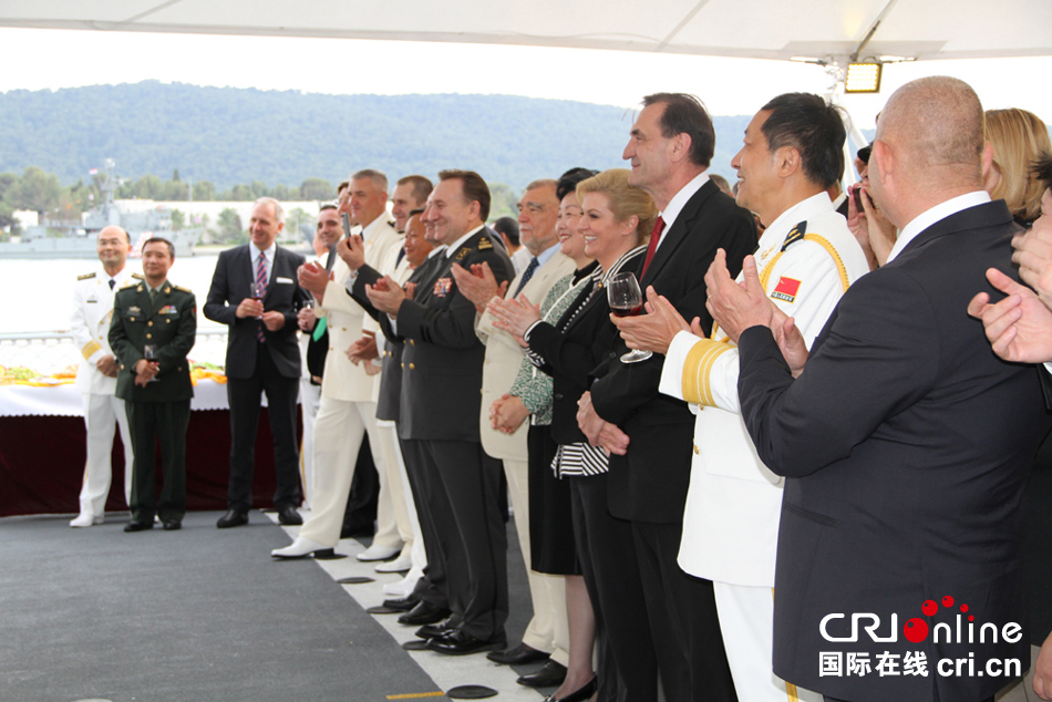 出席招待会的还有克罗地亚前总统梅西奇、克副议长斯塔季奇、克军总参谋长洛夫里奇,海军司令斯蒂潘诺维奇准将及斯普利特市市长巴尔达萨尔等。 招待会上,中国海军官兵还呈上了具有浓郁中国特色的舞狮表演及自编自创的精彩节目。