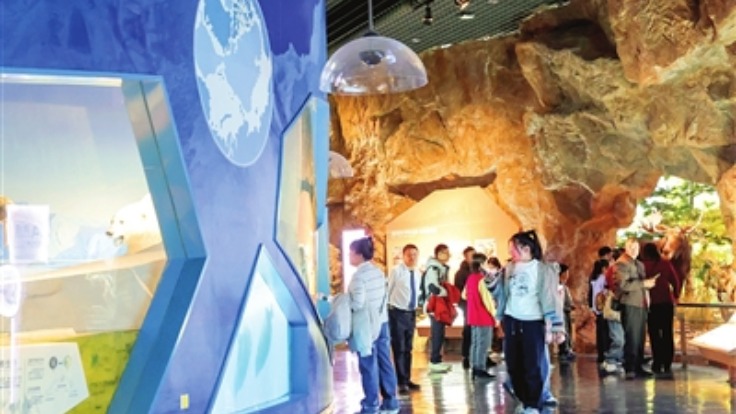 天津外国语大学马克思主义学院教师吴琼等5名不同学段思政课教师担任“讲解员”,60余名来自天津外国语大学和教育集团成员校的大中小学生代表围拢在他们身边,认真听讲、踊跃互动,感叹中国职业教育的国际化成就。