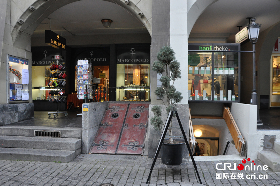 走在伯尔尼老城圆石铺就的光亮街道上,路两旁引人注目的除了砂岩外墙的建筑,还有老城保留至今的15世纪的拱形长廊,这是典型的中世纪建筑。总长约6公里的拱廊里,如今聚集着商场、超市、时装店、钟表店、工艺品店、餐厅、咖啡馆、理发店等等,与现代城市的机能巧妙融合,形成了欧洲最长的有遮蔽购物、散步拱廊,其中以火车站旁的医院街经市场街到杂货街这一段最为精彩。老城街道的另一道风景线,便是街边那些高出地面呈一定坡度安置的木质门,有紧锁的,但多为敞开状态,沿阶梯而下会发现别有一番天地:原来是由曾经的地窖演变而来的地下商店。